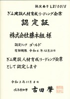 岐阜県知事よりぎふ建設人材育成リーディング企業[ゴールドランク]に認定していただきました。