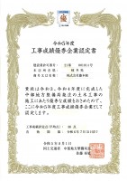 令和5年8月2日 国土交通省 中部地方整備局⾧より 令和5年度工事成績優秀企業として認定していただきました。②