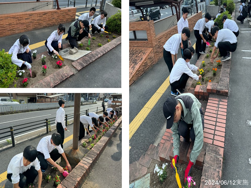多治見北高校の生徒さんたちとコラボし、国道19号弁天町交差点付近の花壇整備を行いました