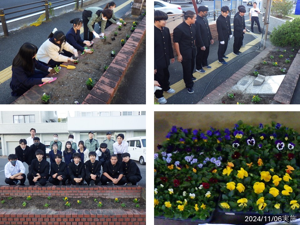 多治見北高校の生徒さんたちとコラボし、国道19号弁天町交差点付近の花壇整備を行いました