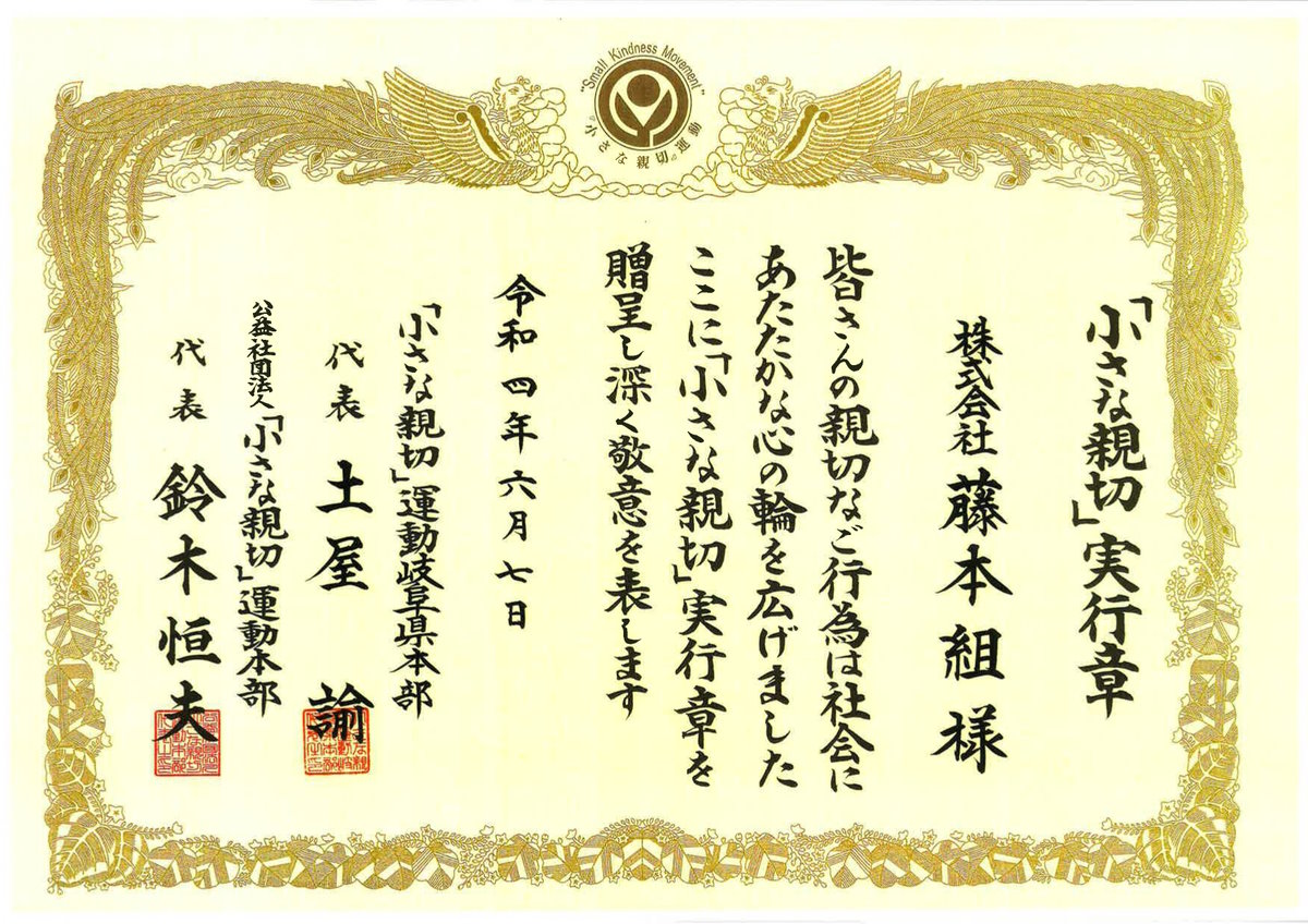 「小さな親切」運動本部より実行章をいただきました。